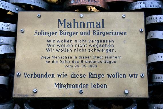 Die Untere Wernerstraße in Solingen, in der das Haus der Familie Genç stand, ist heute ein deutscher Erinnerungsort in negativer Lesart. Niemand kann die Uhr zurückdrehen und die Dinge ungeschehen machen. Es kann nur versucht werden, die Erinnerung in der Gegenwart wach zu halten. Bundespräsident Joachim Gauck konstatiert aus diesem Grund im Jahr 2012: „Es ist die Gegenwart, die unsere Wachsamkeit, unsere Entschlossenheit, unseren Mut und unsere Solidarität braucht.“ Und den rechtsextremen Feinden der Verfassung hält er entgegen: „Euer Hass ist unser Ansporn“ und bezeugt somit, dass der einzige Weg in die Zukunft ein friedfertiges Miteinander auf der Grundlage der demokratisch-freiheitlichen Grundordnung ist.