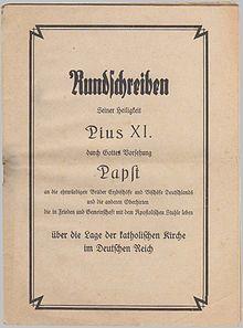 Zusammen mit den beiden anderen Enzykliken des Jahres 1937, „Divini redemptoris“ (19. März) gegen den Kommunismus und „Firmissimam constantiam“ (28. März) über die Lage der Kirche in Mexiko, wurde sie zum Kernstück der lehramtlichen Aussagen des Papsttums gegenüber den totalitären Systemen in der ersten Hälfte des 20. Jahrhunderts.