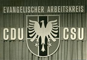 Logo des Evangelischen Arbeitskreises der CDU/CSU, hier im Rahmen der 11. Bundestagung vom 02. bis 04. April 1964 in München. (Quelle: Konrad-Adenauer-Stiftung, ACDP.)