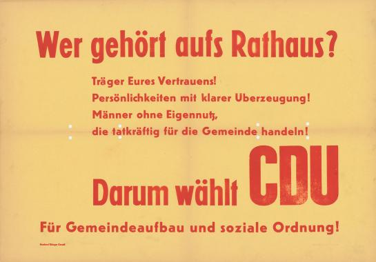 Auf der dritten interzonalen Tagung der CDU/CSU-Kommunalpolitiker, die am 18./19. Oktober 1949 in Fulda stattfand, verabschiedeten die Delegierten „Leitsätze für die kommunalpolitische Arbeit der CDU und CSU“. Ganz im Sinne des für die geistigen Grundlagen der Christlichen Demokratie bestimmenden Subsidiaritätsprinzips definierten die Leitsätze „Gemeinde als elementares Bauteil der neuen Ordnung, mit dem „eine auf christlicher Grundlage beruhende Kultur, eine Erziehung zum christlichen und demokratischen Staate, eine vom sozialen Geiste erfüllte Wohlfahrtspflege, eine gerechte Wirtschaftsordnung und eine auf Ausgleich der sozialen Gegensätze bedachte Steuer- und Finanzpolitik“ verwirklicht werden könne“ (Hans-Otto Kleinmann).