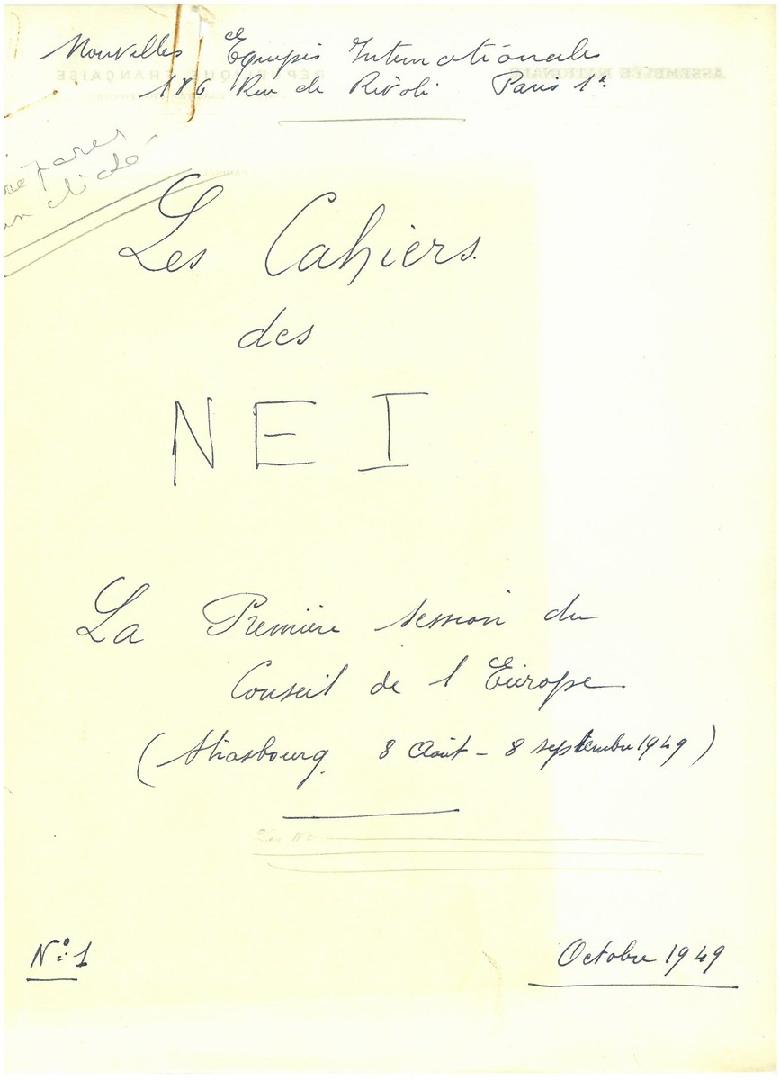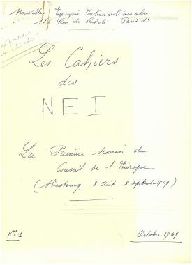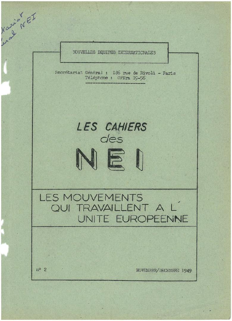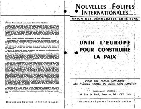 Im gleichen Zeitraum festigte sich die Institution der NEI. Im Mai 1948 organisierten die Equipes federführend die Haager Konferenz mit und beteiligten sich an der daraus folgenden Gründung des European Movement, aus dem 1949 der Europarat hervorging. In diesem schlossen sich die der NEI angehörenden Parteien als erste zu einer Fraktion zusammen, wie auch später in den Parlamentarischen Versammlungen der EGKS, der EWG und der Westeuropäischen Union.