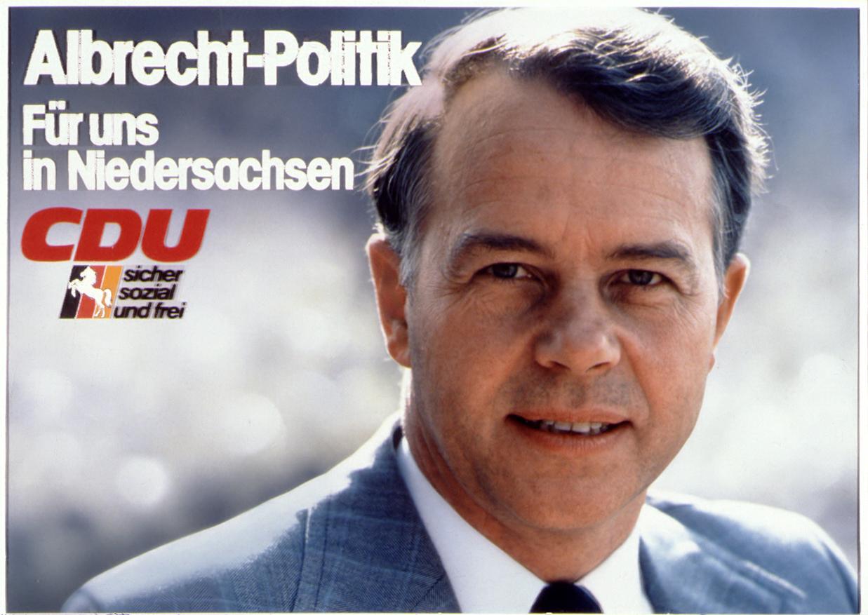 Zusammen mit dem beliebten Parteivorsitzenden Hasselmann bildete er bis 1990 ein erfolgreiches Gespann. Bei den Landtagswahlen 1978 und 1982 erreichte die CDU mit ihrem populären Ministerpräsidenten sogar absolute Mehrheiten. Die Landtagswahl 1986, die unter dem Eindruck des Reaktorunfalls von Tschernobyl stand, konnte die CDU noch einmal knapp gewinnen. Mit der FDP bildete sie erneut eine Regierungskoalition. Die Legislaturperiode bis 1990 war dann geprägt von Sparbemühungen der Landesregierungen und kleineren Skandalen.