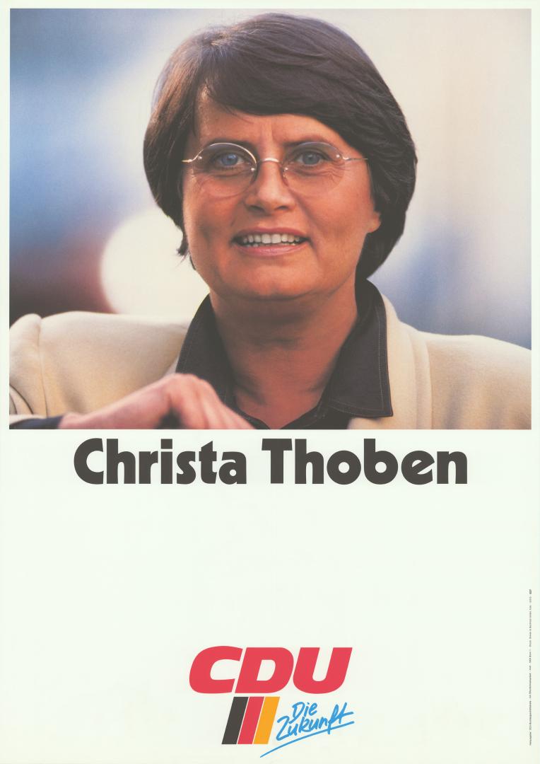 Ihren wirtschaftspolitischen Sachverstand stellt Christa Thoben ihrer Partei weiterhin zur Verfügung. Auf der Klausurtagung am 14./15. Januar 1994 in Windhagen stimmt der CDU-Bundesvorstand für das Papier „Für Wachstum und Beschäftigung“, das sie zusammen mit dem damaligen Bundesumweltminister Klaus Töpfer verfasst hat. Das Aktionsprogramm wird auf dem 5. Parteitag der CDU am 21. Februar 1994 in Hamburg angenommen.