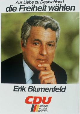 Da sich nach Kriegsende schnell die zentrale Bedeutung der Parteien für den Aufbau der Demokratie abzeichnete, entschied sich auch der bis dahin unabhängige Blumenfeld, einer Partei beizutreten. Seine Identifikation mit der „Großvaterfigur“ Konrad Adenauer und dessen Politik der Öffnung gegenüber Europa und dem Westen waren maßgeblich für seinen Eintritt in die CDU im Juni 1946. Nachdem er bei den ersten freien Wahlen im Oktober 1946 zum Mitglied der Hamburgischen Bürgerschaft gewählt wurde, setzte er sich hier besonders für den Abbau der Planwirtschaft und den Übergang zur Marktwirtschaft im Sinne der Vorstellungen Ludwig Erhards ein. Nach erneuten Wahlen übernahm er im Oktober 1949 den Vorsitz der CDU-Bürgerschaftsfraktion, der größten Oppositionsfraktion des von der SPD regierten Landesparlaments.