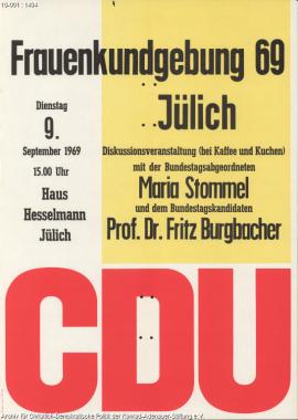 In der folgenden Bundestagswahl 1961 errang Burgbacher mit 64,4% der Erststimmen das Direktmandat im Wahlkreis Geilenkirchen – Erkelenz – Jülich, welches Karl Arnold bei der vorherigen Wahl gewonnen hatte.
