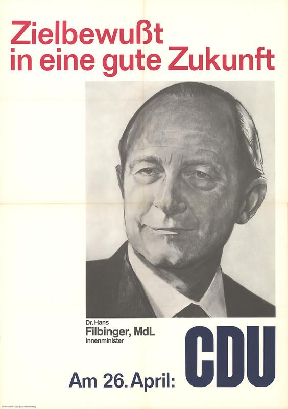Filbingers Weg in politische Spitzenämter in den 1960er Jahren verlief eher im Schatten des großen Tagesgeschehens. Presseberichte aus dieser Zeit beschreiben seinen Politik-stil als „distanziert“ und „sachlich“. Lange Zeit eilte ihm der Ruf eines Verwaltungsfachmanns voraus.