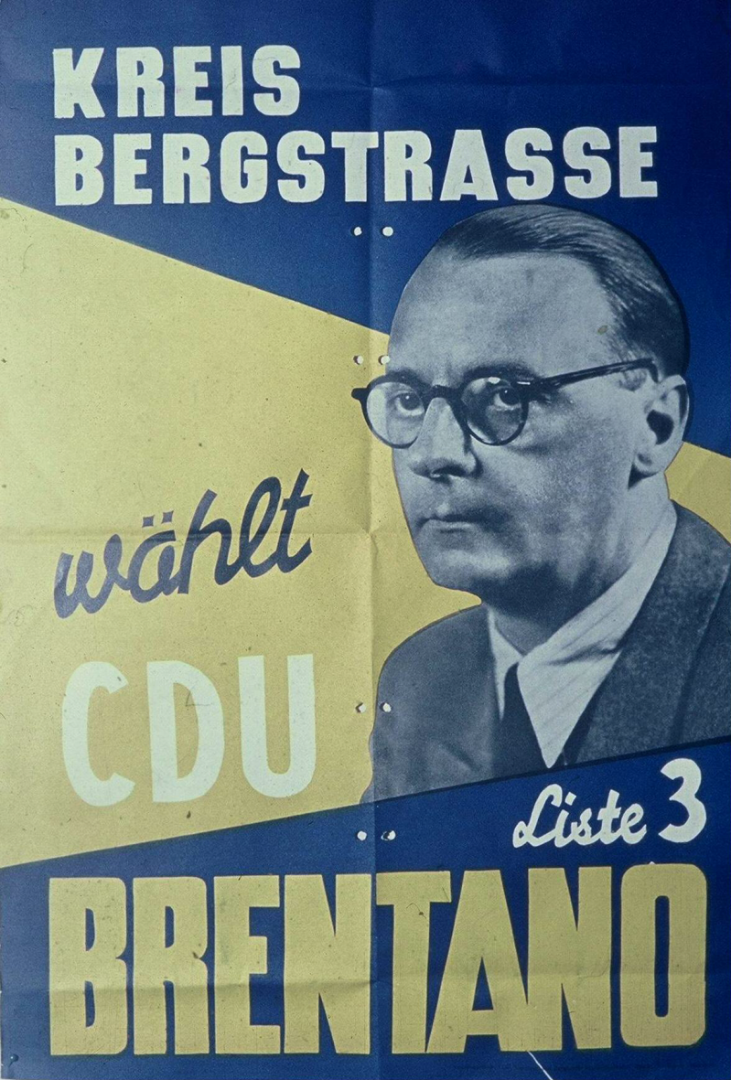 Als sich für Deutschland nach dem Zusammenbruch des Dritten Reichs und der Kapitulation doch noch einmal die Möglichkeit bot, die von Brentano sprichwörtlich beschworene Wüste zu kultivieren, sah er sich dazu berufen, seinen Beitrag zu leisten. Als Mitverfasser der „Frankfurter Leitsätze“ vom 15. September 1945 trat er politisch das erste Mal an die Öffentlichkeit. Die Leitsätze forderten eine überkonfessionelle Volkspartei auf christlicher Grundlage mit stark sozialen, teilweise sozialistischen Forderungen. Als diese überkonfessionelle Partei unter dem sich schließlich durchsetzenden Namen Christlich Demokratische Union tatsächlich ins Leben gerufen wurde, gehörte Brentano in Darmstadt zu den Gründungsmitgliedern.