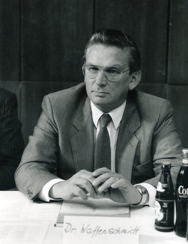 Waffenschmidt verstarb kurz vor seinem 69. Geburtstag am 7. Mai 2002. Er hinterliess seine Frau Ilse und die Kinder Ute, Elke, Susanne und Christoph.