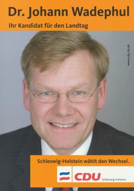 Am 15. Juli 2000 erfolgte die Wahl zum Landesvorsitzenden, Wadephul setzte sich auf dem Landesparteitag in Neumünster in einer Kampfabstimmung gegen den langjährigen Europaabgeordneten Reimer Böge durch.