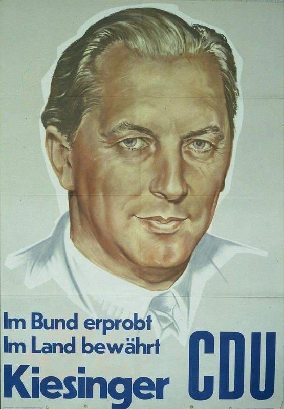 Kiesinger, dem nach 1933 die ursprünglich angestrebte Karriere in der Rechtsprechung oder in der akademischen Lehre unmöglich geworden war, gehörte 1945 nicht zu den Politikern der ersten Stunde. In die Politik kam er aufgrund seiner Freundschaft mit dem damaligen CDU-Vorsitzenden von Württemberg-Hohenzollern, Gebhard Müller, der Kiesinger das Amt des Landesgeschäftsführers anbot, das dieser bis 1951 versehen sollte. Auch die Kandidatur für ein Bundestagsmandat strebte Kiesinger zunächst nicht an, dann wurde er jedoch mit einem der besten Ergebnisse in den Deutschen Bundestag gewählt. Dort zog der versierte Redner die Aufmerksamkeit Adenauers auf sich und gehörte bald zur Elite des neuen Parlaments.