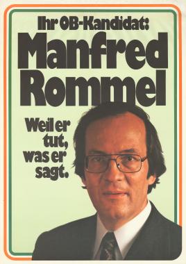 An den Wahlergebnissen zu seiner zweiten und dritten Amtszeit als Oberbürgermeister lässt sich der hohe Grad der Akzeptanz von Rommels Politik ablesen: 1982 erreichte er 69,8 % der Wählerstimmen, 1990 sensationelle 71,7 %. Zentrale Herausforderungen in seiner Amtszeit waren die Modernisierung des Personennahverkehrs und der Infrastruktur der Landeshauptstadt. Bereits in den 1970er Jahren, einer Zeit der stetigen Ausweitung der öffentlichen Haushalte, betrieb Rommel eine strikte Finanzpolitik. Um Schulden abzubauen, leitete er 1993 eine umfassende Haushaltskonsolidierung ein.