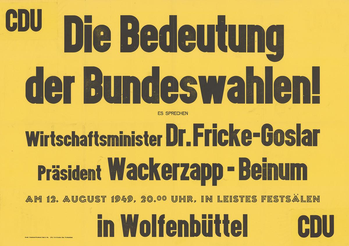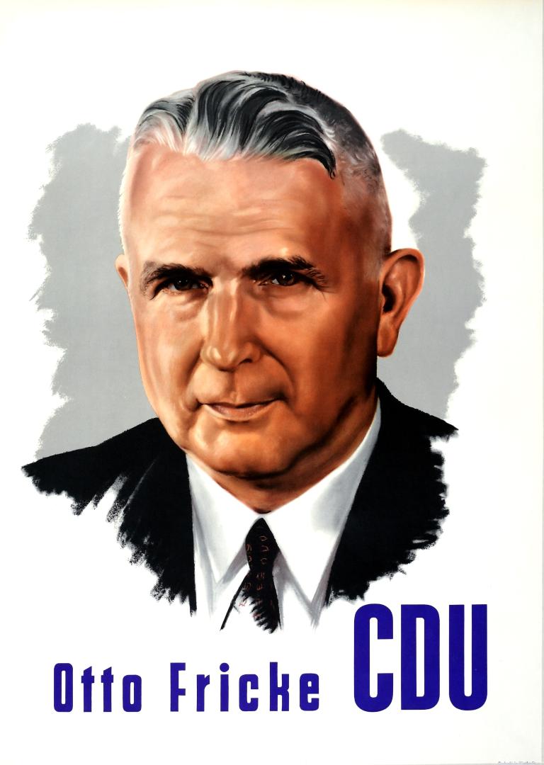 Kurz danach fand im Oktober 1950 in Goslar der erste Bundesparteitag der CDU statt. Bis heute hält sich hartnäckig die Legende, dass der Parteitag nur wegen der guten Beziehungen Otto Frickes zu Bundeskanzler Konrad Adenauer in der alten Kaiserstadt abgehalten wurde. Zwar waren beide Politiker gut miteinander bekannt, doch bestand weder eine persönliche Freundschaft, noch ließ sich Adenauer von Fricke beraten. Enger war hingegen der Kontakt zu Ludwig Erhard, den der Goslarer Unternehmer sehr bewunderte.