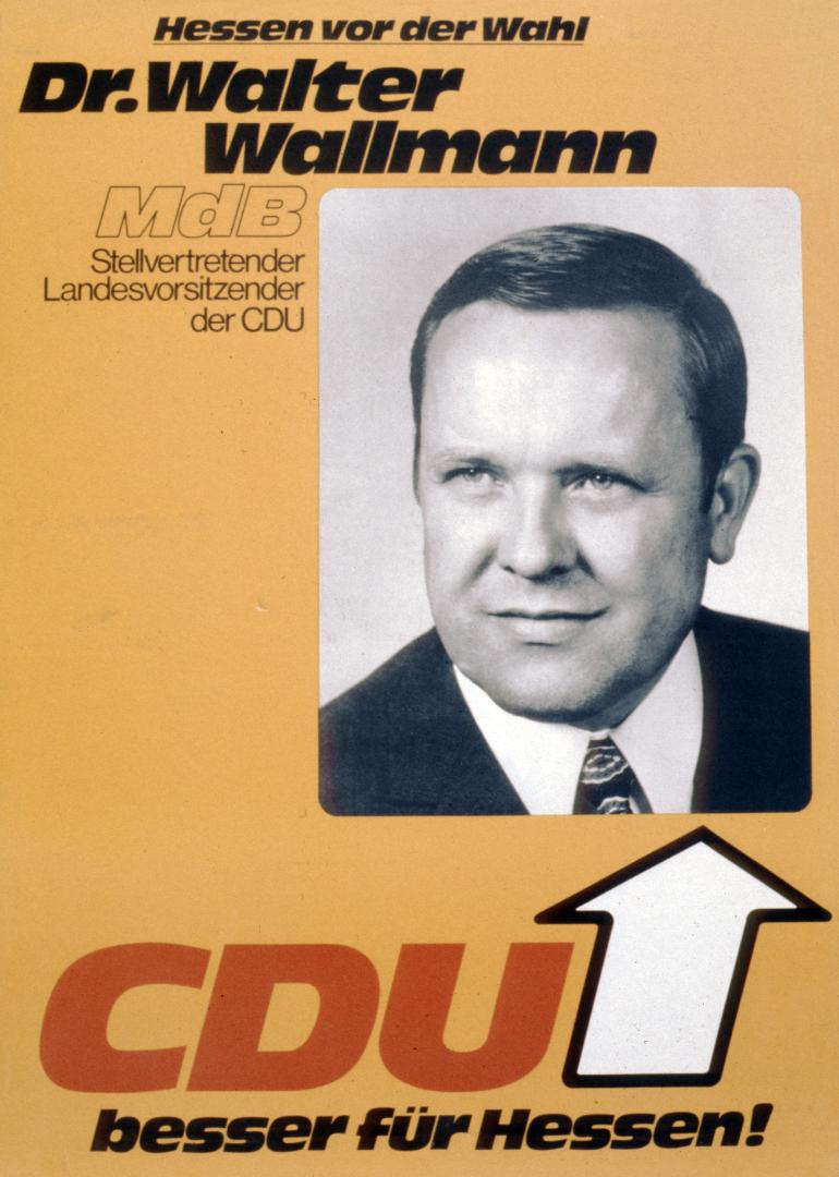 Nachdem die CDU bei der Wahl in Hessen 1982 abermals keine Mehrheit erhalten hatte, verzichtete Dregger auf den Landesvorsitz und Wallmann wurde sein Nachfolger. Weder SPD noch CDU verfügten im Landtag über eine Mehrheit. Die unklaren Machtverhältnisse blieben auch nach vorgezogenen Wahlen bestehen, wobei die Partei Die Grünen die SPD-Minderheitsregierung tolerierte. Im Jahr 1985 wurde dann in Wiesbaden die erste rot-grüne Koalition gebildet.