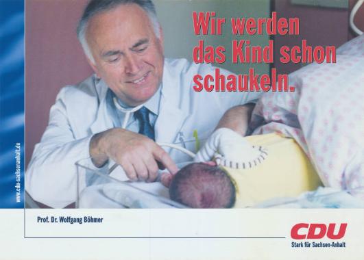 Es gelang ihm, nicht nur die verunsicherte Partei zusammenzuhalten, sondern sie auch zu konsolidieren. 2001 übernahm Böhmer außerdem den Vorsitz der CDU-Fraktion im Landtag von Sachsen-Anhalt. Seine Wahl zum Spitzenkandidaten für die Landtagswahl 2002 konnte dann niemanden mehr überraschen. Mit dem Slogan „Wir werden das Kind schon schaukeln“ und einem Plakat, das Böhmer als Arzt mit einem Säugling zeigte, ging die CDU Sachsen-Anhalt in den Wahlkampf. Obwohl der CDU-Kandidat von den Medien als zu alt und farblos kritisiert wurde, erhielt die CDU bei der Landtagswahl im April 2002 37,3% und gewann 48 der 49 Wahlkreise. Zusammen mit der FDP, die 13,3% bekam, bildete Böhmer eine Regierungskoalition.