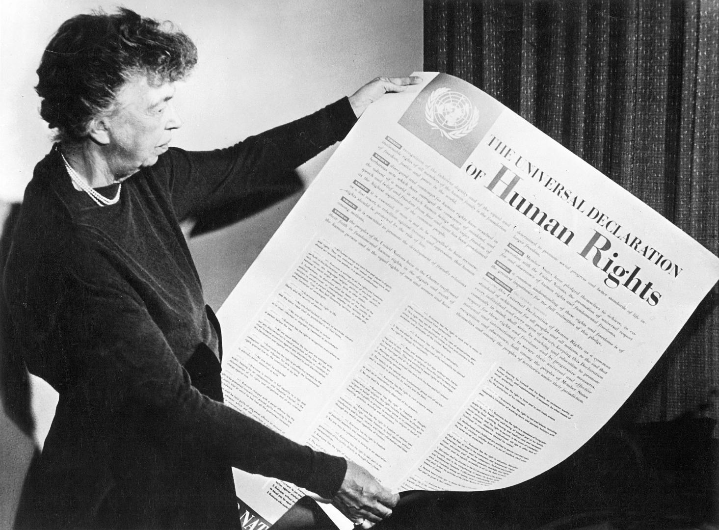 „Die internationale Erklärung der Menschenrechte ist das wichtigste Dokument des Jahrhunderts”. Später fügte er hinzu, die Erklärung müsse „… ein Werkzeug der Menschen auf der Straße sein, und nicht nur ein Schmuckstück des internationalen Rechts”.