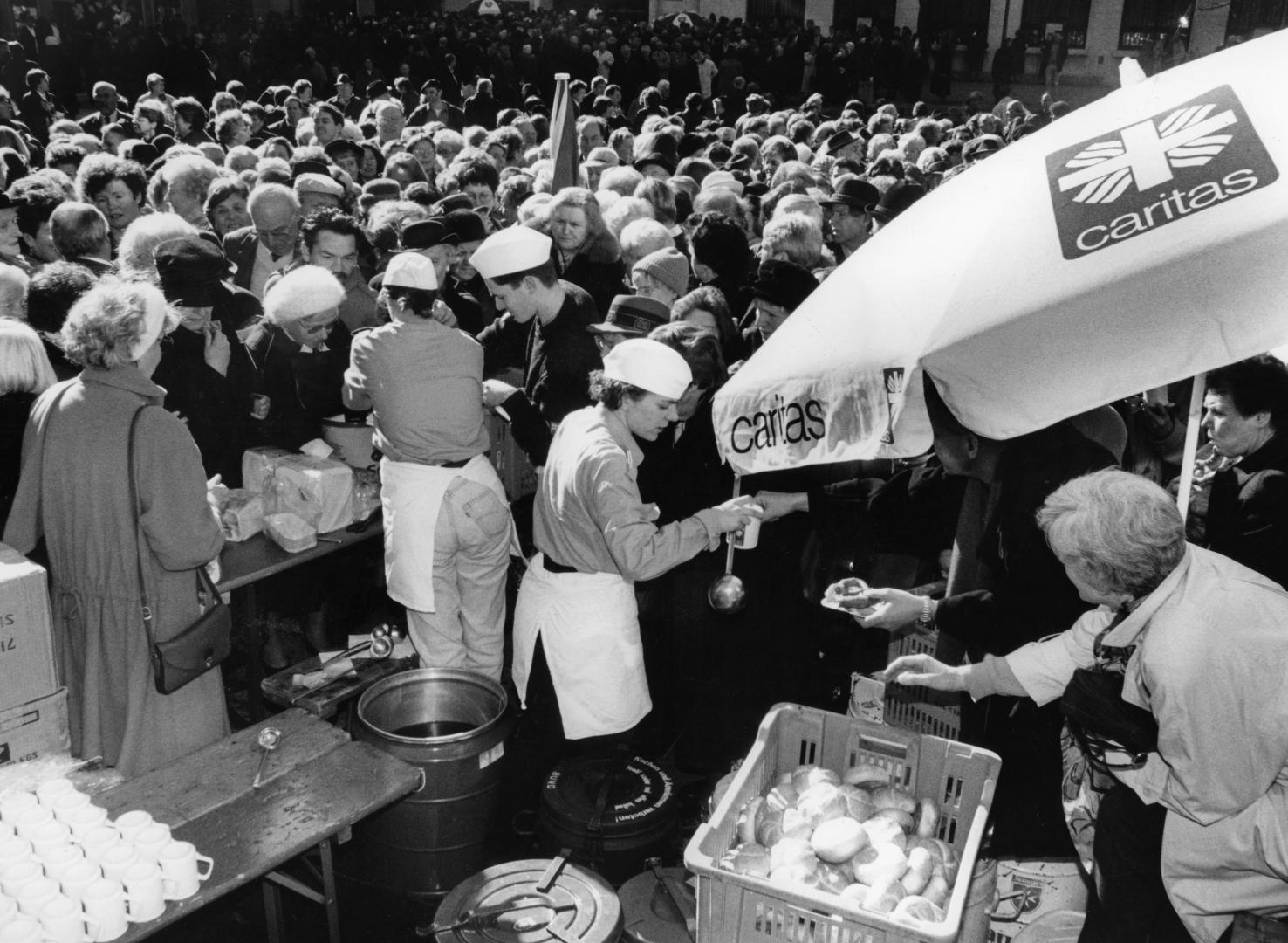Die deutsche Teilung nach dem Krieg führte zu einer unterschiedlichen Entwicklung der Caritas in Ost und West. In der DDR, in der die SED auch das sozialpolitische Monopol beanspruchte, konnte die Caritas als freier Wohlfahrtsverband nicht fortbestehen. Sie konnte aber dadurch gerettet werden, dass die Bischöfe sie an ihre eigenen Diözesanverwaltungen angliederten. Im Vergleich zu Westdeutschland blieben die Strukturen der ostdeutschen Caritas in bescheidenem Rahmen. In den von der Caritas betriebenen Krankenhäusern, Kinder-, Behinderten- und Altenpflegeheimen sowie Kindergärten arbeiteten 1988 rund 10.000 hauptamtlich Beschäftigte. Arbeitsfähig blieb die Caritas in der DDR nicht zuletzt durch finanzielle Unterstützung aus Westdeutschland.