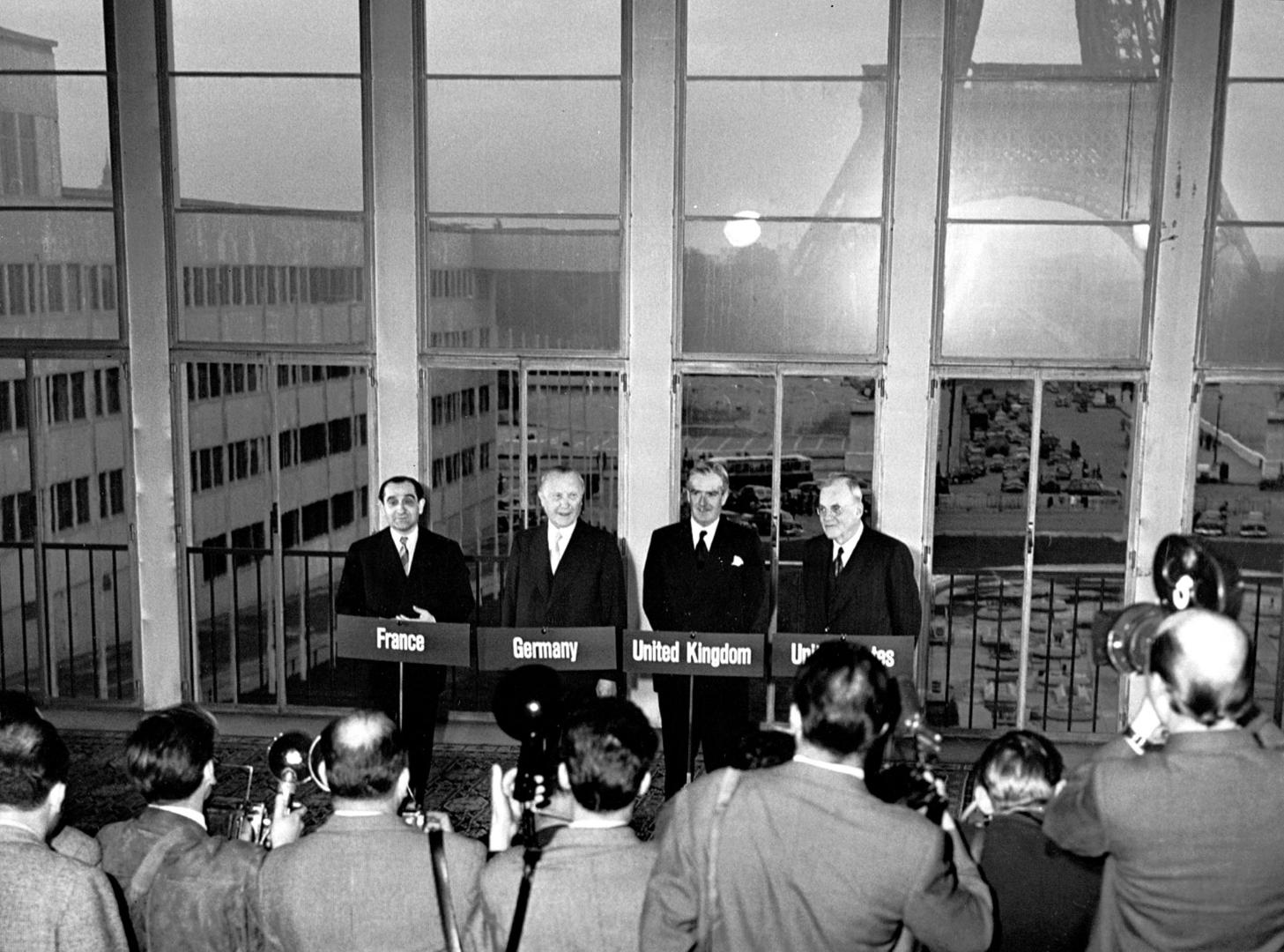 Das stellte sich als richtiges Urteil heraus. Die EVG war zwar vom Tisch, aber es blieb die Notwendigkeit, dem militärischen Übergewicht der Sowjetunion etwas entgegenzustellen und die Verteidigungsfähigkeit der NATO-Staaten in Europa zu erhöhen. Das sollte vor allem aus der Sicht Washingtons rasch geschehen. Und so verliefen die auf das Scheitern der EVG folgenden innerwestlichen Absprachen in ungewöhnlich raschem Tempo. Zunächst machte Großbritannien den Vorschlag, den Brüsseler Pakt zur Westeuropäischen Union (WEU) umzuwandeln und die Bundesrepublik aufzunehmen. Ende Oktober 1954 begann dann in Paris eine Konferenz, auf der mit wechselndem Teilnehmerkreis die Aufgaben der WEU festgelegt, der Deutschlandvertrag (der das Besatzungsstatut ablöste) ausgearbeitet, eine Lösung der Saarfrage konzipiert sowie die Aufnahme der Bundesrepublik mit eigenen nationalen Streitkräften in die NATO beschlossen wurde. Am 23. Oktober 1954 wurde das Konvolut der Pariser Verträge unterschrieben. Nach ihrer Ratifizierung durch die Parlamente der beteiligten Staaten wurde der NATO-Beitritt der Bundesrepublik am 5. Mai 1955 vollzogen, wenig mehr als acht Monate nach dem Aus der EVG. Von Konrad Adenauer ist der Satz überliefert, formuliert vor dem CDU-Bundesvorstand, die neue Organisation der westlichen Verteidigung sei für die Deutschen insgesamt viel besser, als es die EVG gewesen wäre.
