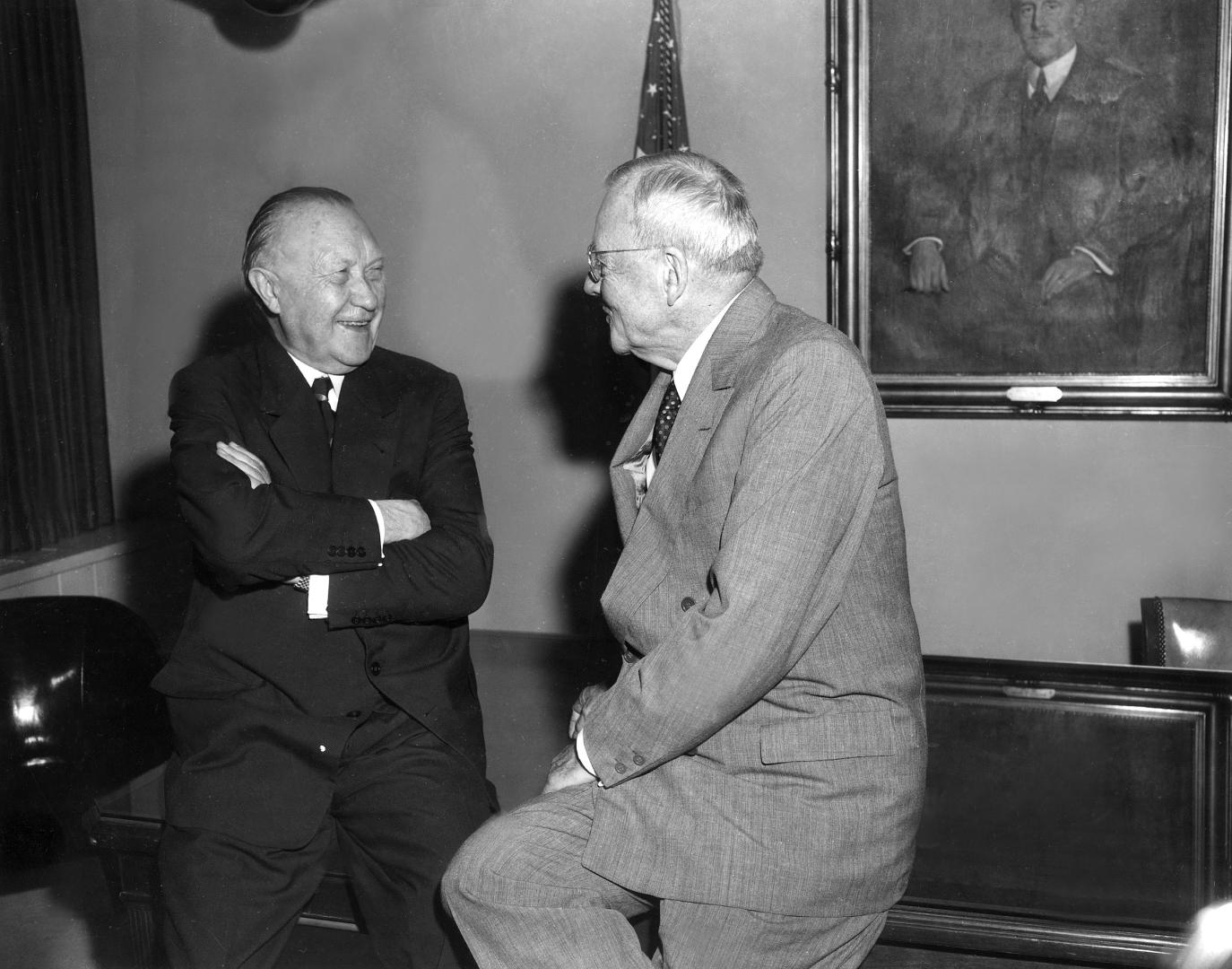 Adenauers besondere Aufmerksamkeit galt dem deutsch-französischen Verhältnis. Bereits in seiner Amtszeit als Oberbürgermeister von Köln in den 1920er Jahren hatte er Überlegungen angestellt, die durch Kriege und Kriegsfolgen belasteten Beziehungen zwischen den beiden Nachbarn über wirtschaftliche Kooperation und Verflechtung zu verbessern. Diese Pläne griff er nach 1945 auf. In dem französischen Außenminister Robert Schuman fand er ein Gegenüber, denn Schuman wollte ebenfalls die wirtschaftliche Zusammenarbeit, insbesondere im Montansektor, als einen Anknüpfungspunkt für Fortschritte in politischen Fragen nutzen. In seinem am 9. Mai 1950 präsentierten Plan schlug Schuman vor, die französische und die deutsche Kohle- und Stahlproduktion einer gemeinsamen Hohen Behörde zu unterstellen. Über sie sollte der wirtschaftliche Wiederaufbau Westeuropas beschleunigt und dessen politische Einigung vorangebracht, gleichzeitig aber auch das ökonomische Potential der Bundesrepublik – und hier speziell der Ruhrindustrie – unter Kontrolle gehalten werden. In streng gemeiner Mission vorab informiert, zögerte Adenauer keinen Moment, die Offerte anzunehmen. Da sich auch die Benelux-Staaten sowie Italien dieser Initiative anschlossen, entstand mit der Europäischen Gemeinschaft für Kohle und Stahl (EGKS) ein Jahr später die erste jener europäischen Gemeinschaften, aus denen sich im Laufe der Zeit die heutige Europäische Union entwickeln sollte.
