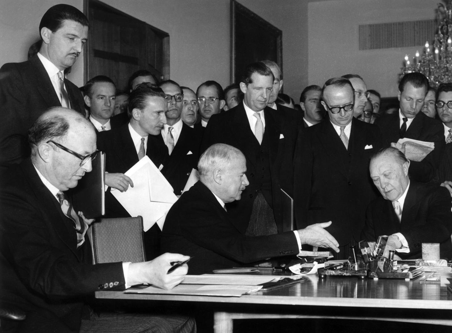 Die „Römischen Verträge“ waren ein Meilenstein in der europäischen Einigungspolitik. Mit der EWG-Kommission in Brüssel und dem Europäischen Parlament in Straßburg war die Basis nicht nur für die Intensivierung der Kooperation untereinander, sondern auch für den weiteren Ausbau der Sechsergemeinschaft gelegt. Zu Adenauers Regierungszeit ließ sich letzteres zwar noch nicht realisieren, doch seit den 1970er Jahren traten in mehreren Schüben weitere europäische Staaten der mittlerweile in Europäische Gemeinschaft (EG) umgetauften Organisation bei und stärkten die Sogwirkung des europäischen Einigungsprozesses.