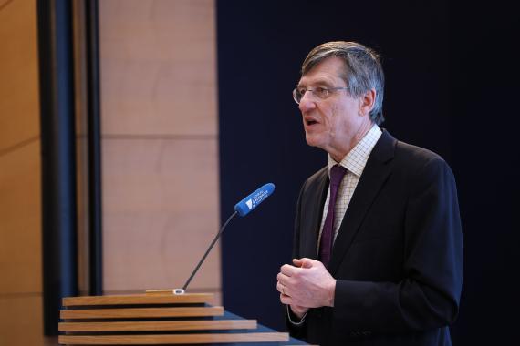 Di Fabio skizzierte in seiner Keynote das Modell der liberalen Demokratie anhand der Rechtsprechung des Bundesverfassungsgerichts und ging dabei auf neue geopolitische Bedrohungslagen – in erster Linie durch den russischen Angriff auf die Ukraine – in einer sich abzeichnenden multipolaren Machtkonkurrenz ein. Dabei stellte er die Frage, ob das wirtschaftliche, technologische und ideelle Gewicht des Westens ausreiche, um sich gegen diese äußeren Bedrohungen behaupten zu können. Mit Blick auf innere Bedrohungslagen der Demokratie beleuchtete Di Fabio die Fragmentierung öffentlicher Meinungsräume, den Verlust institutioneller und lebensweltlicher Bindungskräfte und die Spaltung der Gesellschaft. Für die Erneuerung der pluralen und liberalen Demokratie und ihre künftige Selbstbehauptung sei eine neue, lebendige Zivilgesellschaft zentral. „Die Zukunft der liberalen Demokratie im 21. Jahrhundert wird gut sein, wenn wir das wollen. Das 21. Jahrhundert ist das Jahrhundert, in dem sich das Schicksal der Freiheit entscheidet.“