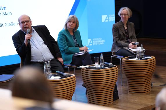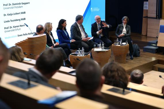 Im Anschluss diskutierte Di Fabio mit Katja Leikert, MdB und Linda Teuteberg, MdB sowie dem Historiker Dominik Geppert und der Ökonomin und Publizistin Karen Horn über die Möglichkeiten und Grenzen historischer Vergleiche, aktuelle wirtschaftliche Herausforderungen sowie die Freiheit als zentralen Wert unserer Verfassung.