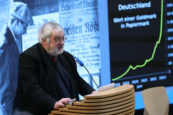 In seiner Einführung erinnerte Karl-Heinz Paqué, Vorstandsvorsitzender der Friedrich-Naumann-Stiftung, an das Jahr 1923: „Der Bestand der Weimarer Republik stand angesichts kumulierter Krisen auf der Kippe. Dass das ‚Krisenjahr‘ zum ‚Krisenbewältigungsjahr‘ wurde, war in erster Linie den Leistungen politischer Persönlichkeiten wie Gustav Stresemann zu verdanken.“