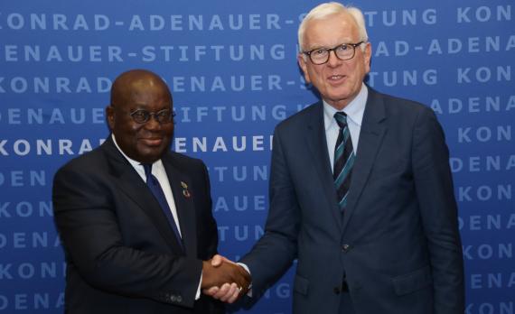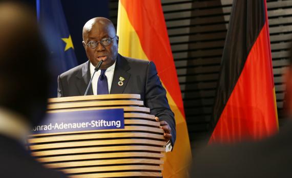 Ghana ist eines von sieben Ländern, die mit den G20-Staaten eine besondere Partnerschaft eingehen: Mit verbesserten politischen Rahmenbedingungen sollen Privatinvestitionen die heimischen Wirtschaften ankurbeln. In der Konrad-Adenauer-Stiftung in Berlin sprach Präsident Nana Addo Dankwa Akufo-Addo jetzt darüber, wie er sein Land voranbringen will.