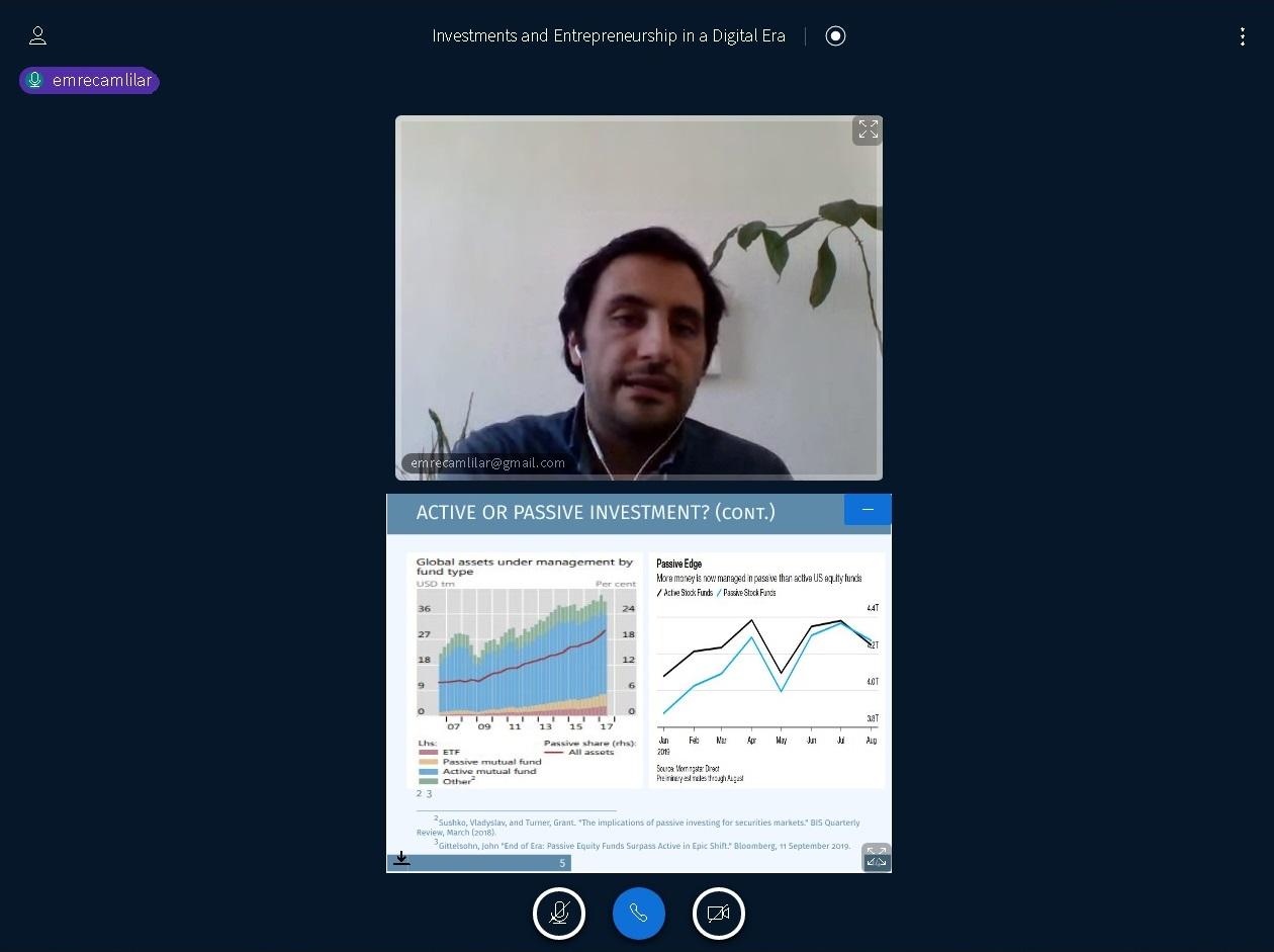 Emre Camlilar, Index Operations Manager based in Frankfurt talked about the topics of investment and the role of crypto currencies in them. In specific he focused on the types of investments, the difference between active and passive investments and the concept of risk. Gradually he discussed also on indexes, where he emphasized on their purpose, their construction and their use cases in active and passive way of investing. Lastly, he touched upon crypto currencies where he referred to their features, latest developments in the market and he briefly discussed on how crypto currencies can be used in investments.