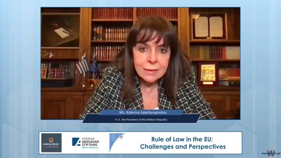 Am Donnerstag dem 18 Februar 2021 hat die Konrad-Adenauer-Stiftung in Zusammenarbeit mit dem Think-Tank e-Kyklos und dem Center of International and European Economic Law eine Online Diskussion zum Thema „Rule of Law in the EU: Challenges and Perspectives“ organisiert. Die Veranstaltung wurde durch eine Ansprache der griechischen Staatspräsidentin Katerina Sakellaropoulou eingeleitet.