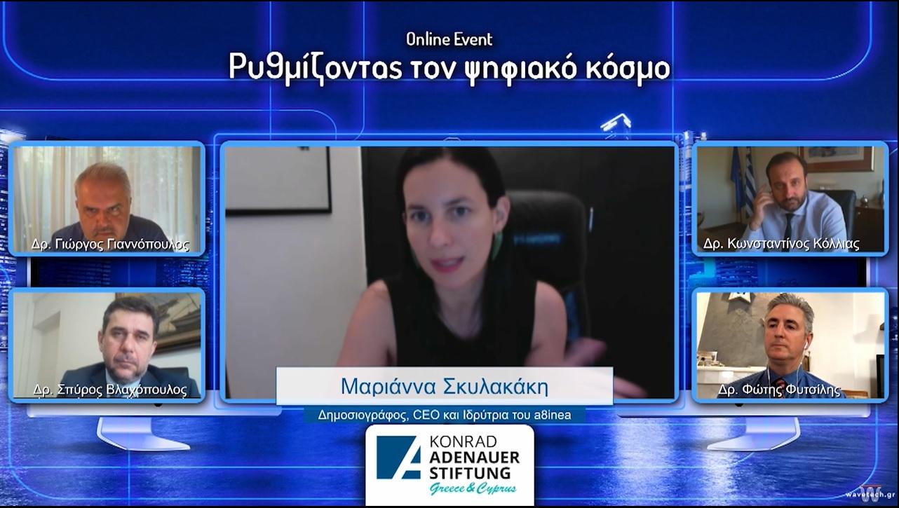 During the experts discussion organized on Thursday June 4th 2020, by Konrad Adenauer Foundation Greece and Cyprus on the regulation of the digital world, interesting positions were presented and a live discussion on up to date topics was held.