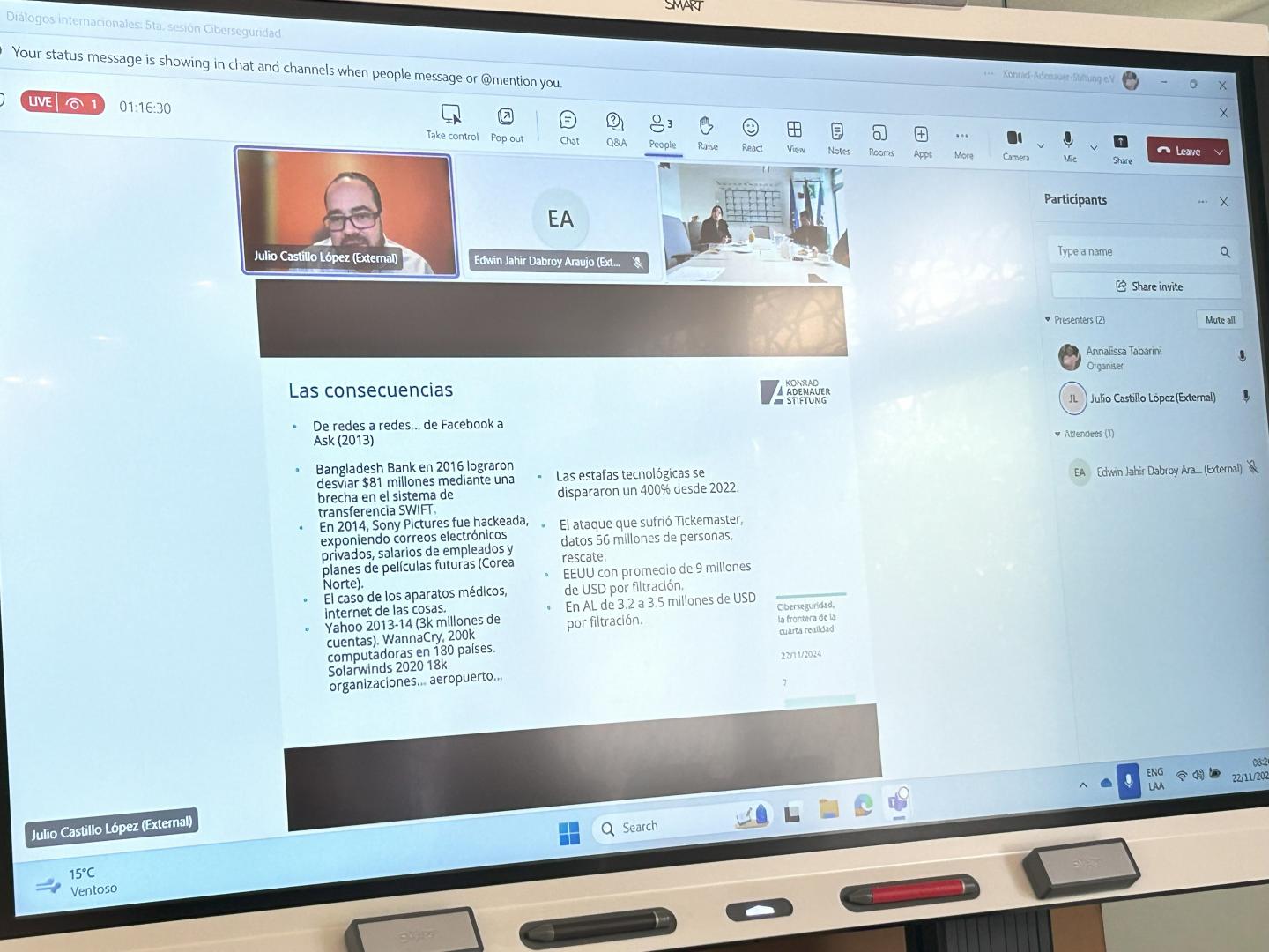 Am Freitag, den 22.11.2024 findet im Anschluss an die Internationalen Dialoge der KAS der 5. KAS Internationaler Dialog mit der Dissertation von Julio Castillo López, Direktor der Rafael Preciado Hernández Stiftung, Mexiko, zum Thema: Cybersicherheit und teilt seine Vision und Position, unter den zu behandelnden Themen:
