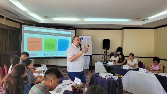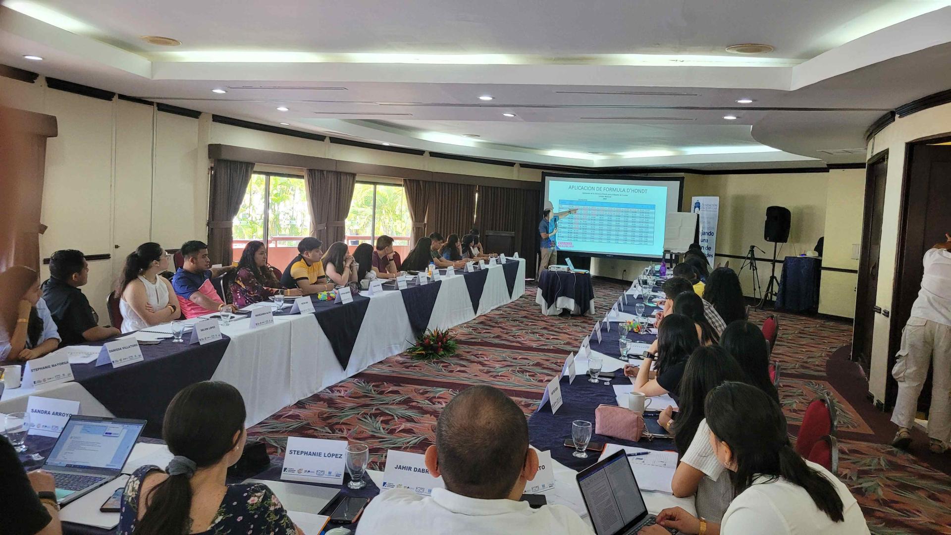 Stephanie López, Javier Fortín und Luis Miguel Reyes nahmen teil, indem sie die Themen Parteiensystem, Wahlsystem und Medien, Information und Interessenvertretung vertieften. Jahir Dabroy, ein Experte der Vereinigung für Forschung und soziale Studien (ASÍES), erörterte Beteiligungsmöglichkeiten, die über das Wählen hinausgehen.