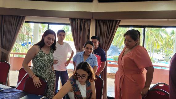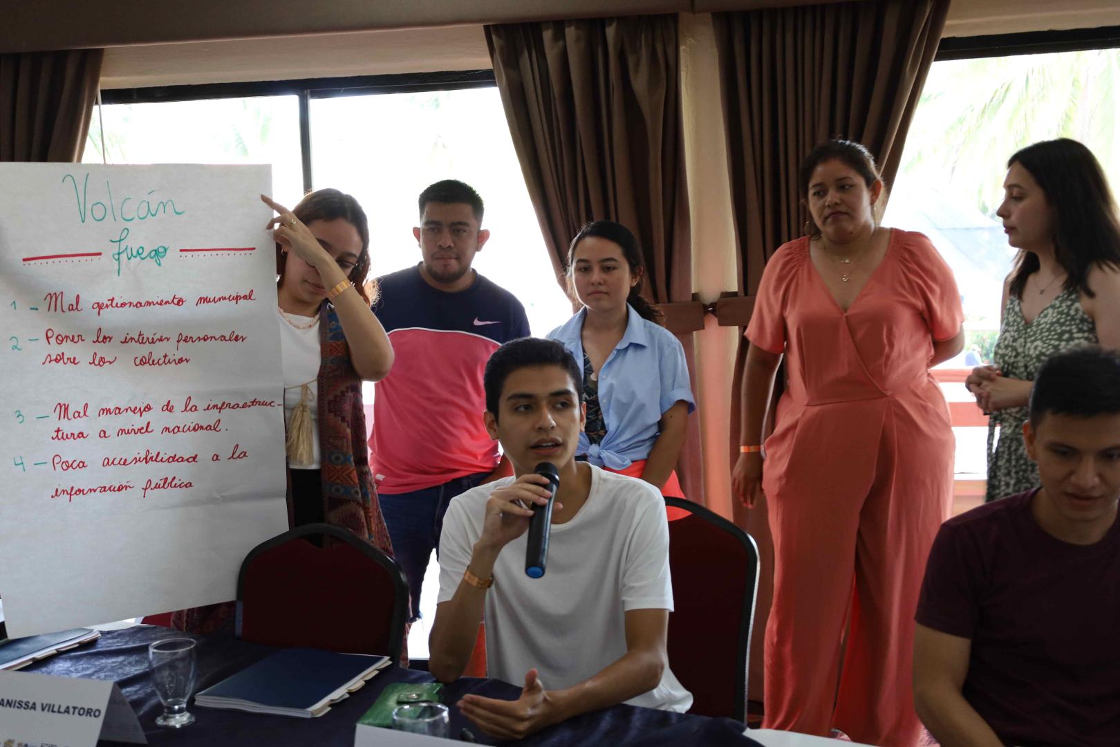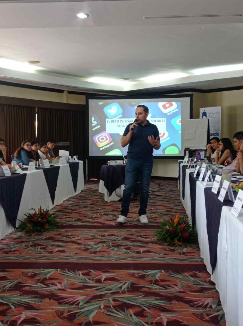 Die Fundación Esquipulas entwickelte den Kommunikations-Workshop mit dem Titel: Auf dem Weg zu einem Modell der Jugendregierung, der mit einer Grundsatzrede des Experten Eddy Simaj begann, der anschließend eine Gruppenaktivität leitete. Die Teilnehmer erstellten ihren politischen Vorschlag und präsentierten ihn, um einen Wahlkampf zu simulieren und den Präsidenten des Staates Los Volcanes zu wählen.