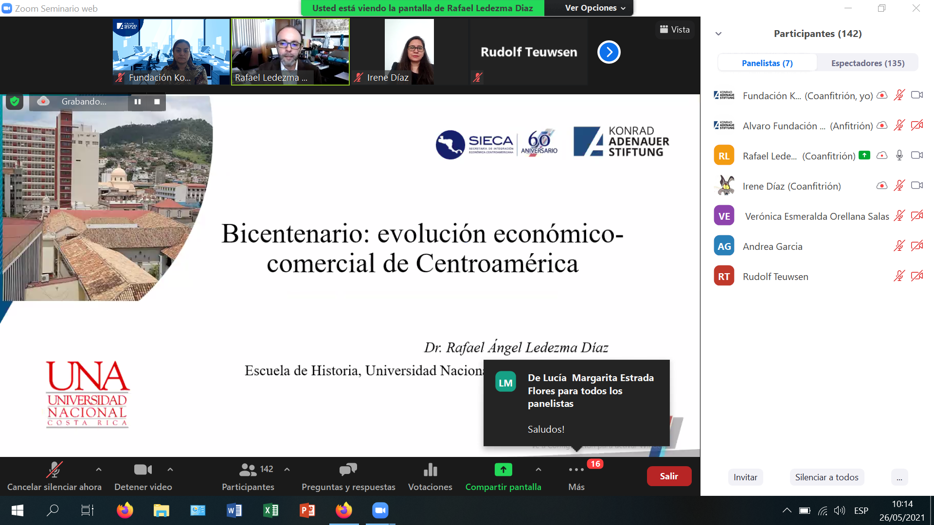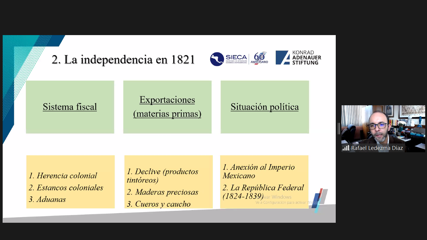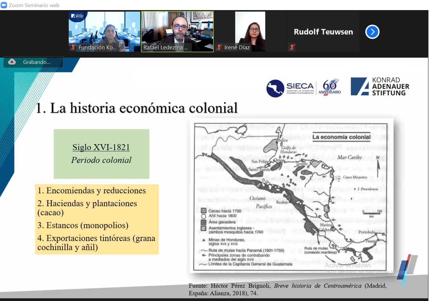 Am Mittwoch, dem 26. Mai 2021, fand die zweite virtuelle Konferenz "Zweihundertjahrfeier: Wirtschaftliche und kommerzielle Entwicklung Zentralamerikas" statt, bei Dr. Rafael Ledezma in seinem Vortrag die folgenden relevanten Themen behandelte: