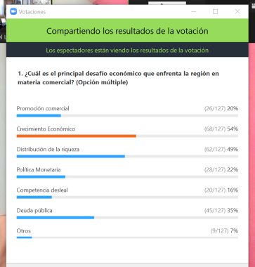 Die Teilnehmer haben, mithilfe von Umfragen, ihr Feedback zur Präsentation geben können. Außerdem konnten die Teilnehmer Fragen stellen, u.a. über die wirtschaftliche und kommerzielle Entwicklung Zentralamerikas in Gegenwart und Zukunft.