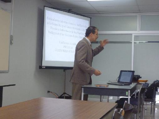El módulo fue impartido por el Dr. Guillermo Padilla (Colombia), miembro del Grupo por el Pluralismo Jurídico-PRUJULA, contraparte de cooperación de la KAS, enfocando sobre principios y estándares internacionales del Derecho a la Consulta, entre lo que se contempla: