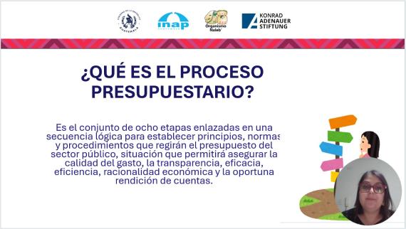 In dieser Sitzung des Kurses stellte Dr. Rokael Cardona einige der Sozialprogramme und Investitionen in indigene Völker vor, die derzeit vom Staat Guatemala durchgeführt werden. Ebenso erläuterte die Ökonomin Claudia García den Zyklus der Vorbereitung und Genehmigung des Haushalts für Einnahmen und Ausgaben des Staates Guatemala.