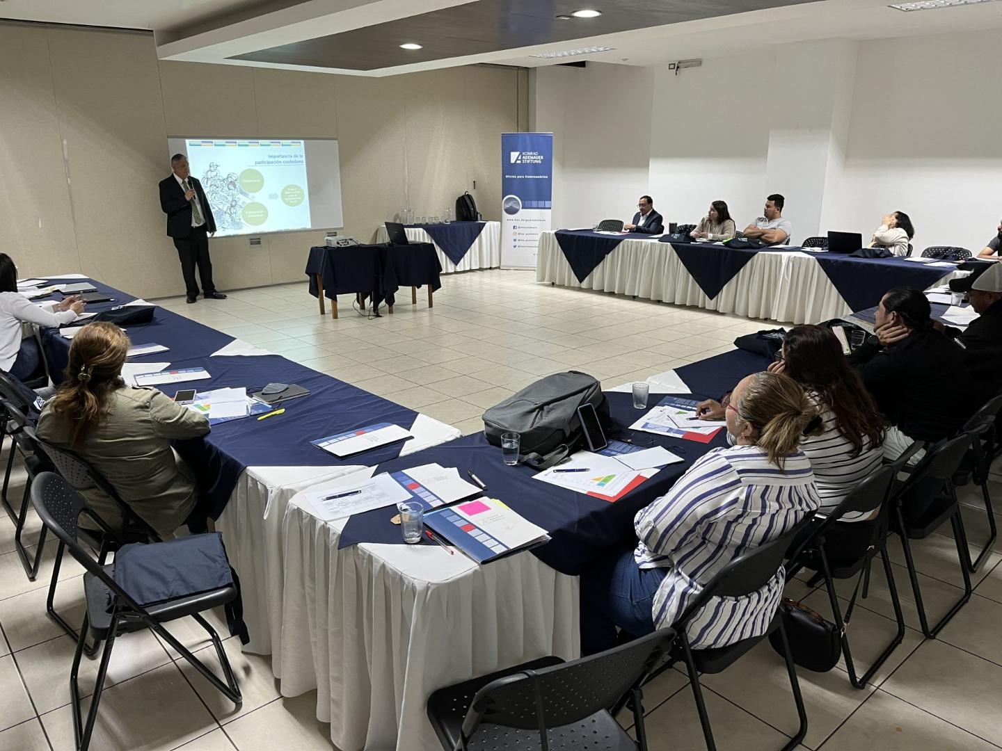 En el curso, los 17 participantes de Guatemala, Honduras, El Salvador, Nicaragua y Costa Rica, pudieron escuchar acerca de tres temas: la participación ciudadana, la Economía Social de Mercado (ESM) y el Desarrollo Económico Local (DEL). Los primeros dos temas fueron impartidos por docentes aportados por la KAS, y el DEL fue impartido por docentes aportados por la RNGG. Así, el Lic. Rolando Molina impartió la cátedra de “Democracia y participación ciudadana”; el Lic. Miguel von Hoegen impartió la cátedra: “Introducción a la ESM e importancia del principio de la subsidiariedad”; la Licda. Astrid Beltetón presentó “El Orden Económico en la ESM”, la Licda. Claudia García expuso “La importancia de la Competencia en la ESM”, y el Lic. Andrés Huard presentó el tema de “El Orden Social en la ESM”.