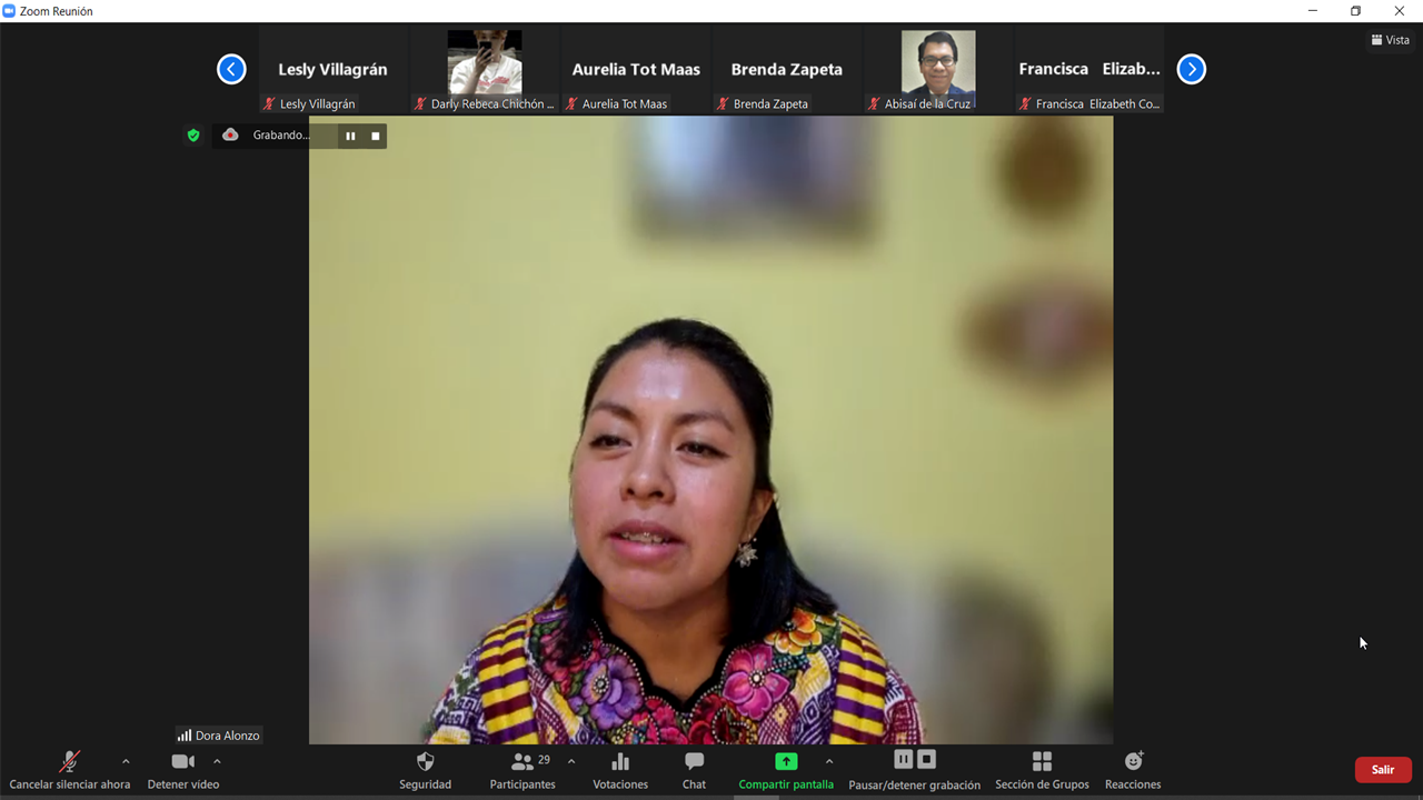 Die Teilnehmer berichteten über ihre Teilnahme an den Community Councils für die Entwicklung (COCODES) und betonten die Notwendigkeit, vor Ort zu arbeiten, um ihre Bedürfnisse zu identifizieren und die Probleme als Voraussetzung für die lokale wirtschaftliche Entwicklung zu lösen.