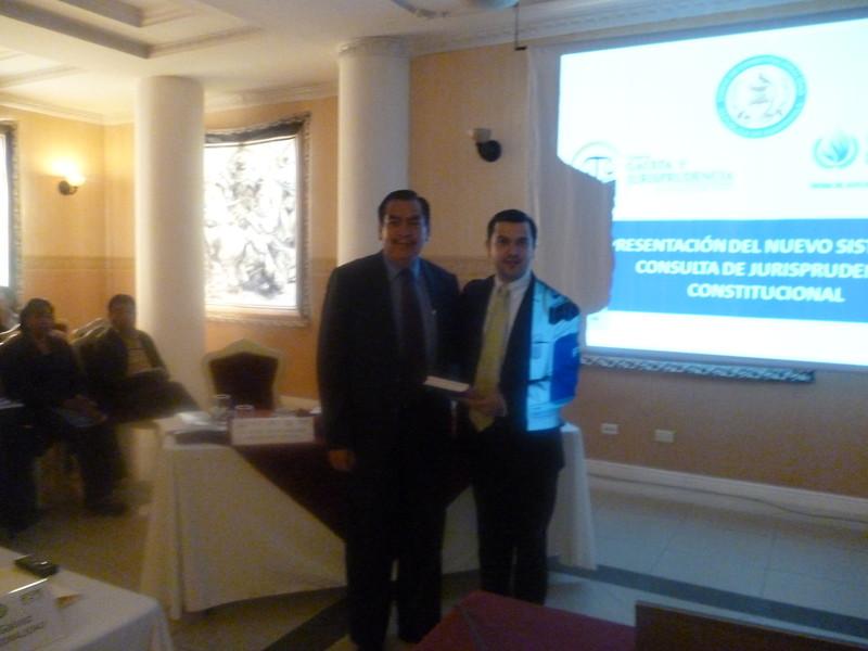 - Presentación y comentarios de la nueva edición 2012 del Anuario de Derecho Constitucional Latinoamericano, agradeciéndole al Dr. Julio Cordón, Director del Instituto de Justicia Constitucional, adscrito a la Corte de Constitucionalidad que estuvo a cargo del mismo. Se aprovechó la oportunidad para invitar a juristas de Occidente a compartir sus investigaciones aplicando para que sean consideradas en las nuevas ediciones de esta obra de la Fundación Konrad Adenauer a través del Programa Regional de Estado de Derecho, con más de diez años de publicación.
