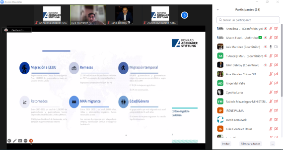 Ziel des virtuellen Workshops war es, Feedback zu den ersten Ergebnissen zu erhalten, die der Berater von auf Migrationsfragen spezialisierten Gruppen präsentierte, mit besonderem Schwerpunkt auf der Notwendigkeit, die Migrationspolitik zu stärken, sowie Beiträge für die Formulierung öffentlicher Strategien zu generieren, die sich mit dem Thema befassen a angesichts der humanitären Krise, die die zentralamerikanische Region in den letzten Jahren erlebt hat, rechtzeitig erfolgen.