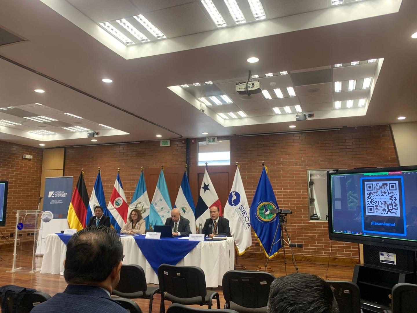 Das Sekretariat für die wirtschaftliche Integration Zentralamerikas (SIECA) feiert in Zusammenarbeit mit der Konrad-Adenauer-Stiftung (KAS) die Zentralamerikanischen Integrationstage mit dem Hybrid-Seminar: Die Rahmenpolitik und der regionale Masterplan für Mobilität und Logistik 2035 und ihre Auswirkungen auf die wirtschaftliche und soziale Entwicklung der zentralamerikanischen Region, das von Herrn César Castillo und später von Herrn José Martínez gehalten wird.