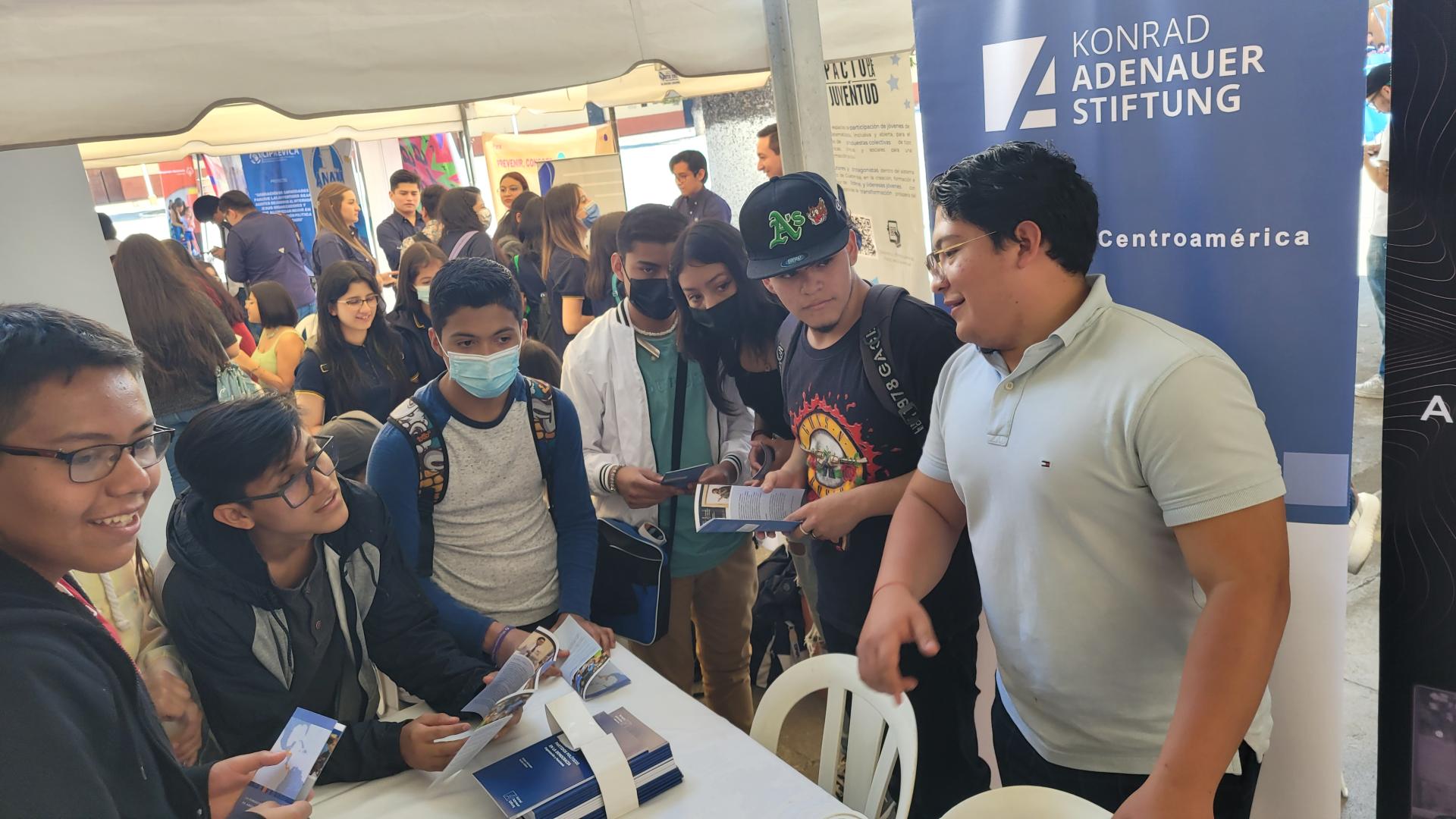 Der Infostand der Konrad Adenauer Stiftung in Guatemala wurde von unserem Stipendiaten Gabriel David betreut, der die Arbeit der KAS sowohl international als auch in Guatemala bekannt machte.