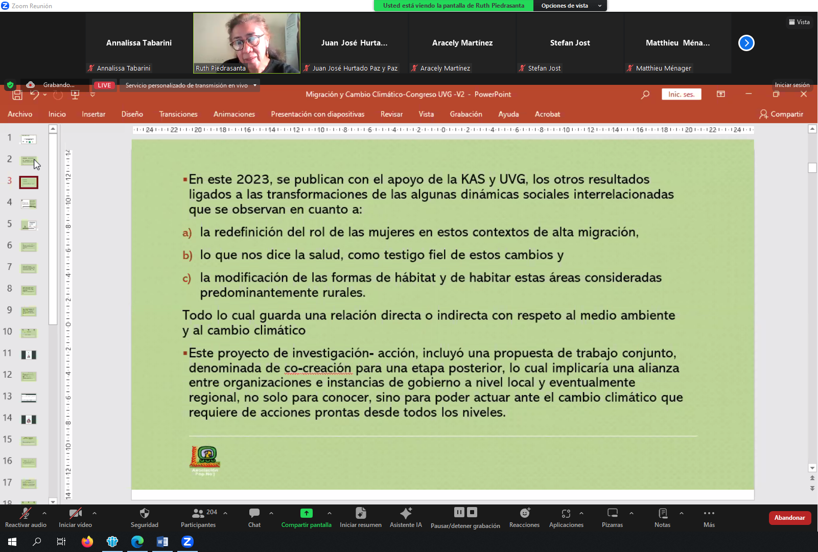 1. Vertiefung der Analyse der Ergebnisse der ersten Sondierungsphase "Klimawandel, Anfälligkeiten und Migration in einer Maya-Mam-Gemeinschaft in Guatemala" (Pop No'j-ARA 2022), um wissenschaftliches Material in Form eines wissenschaftlichen Artikels über Klimawandel, Migrationen und deren lokale Auswirkungen zu erstellen.