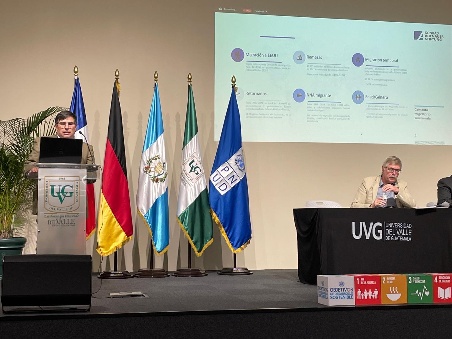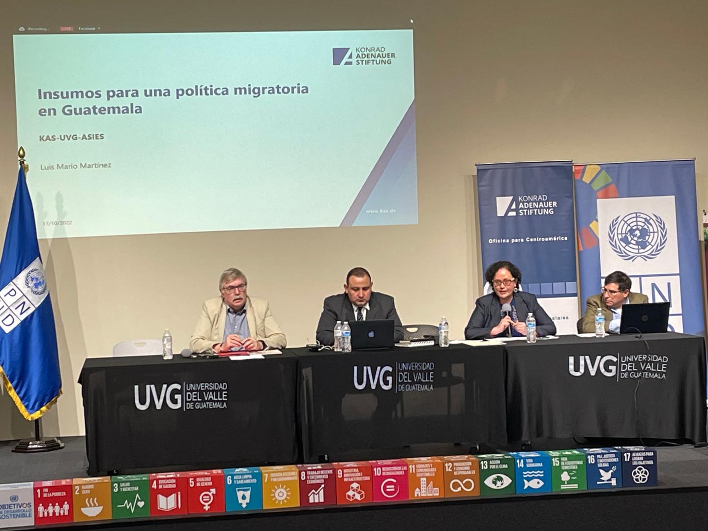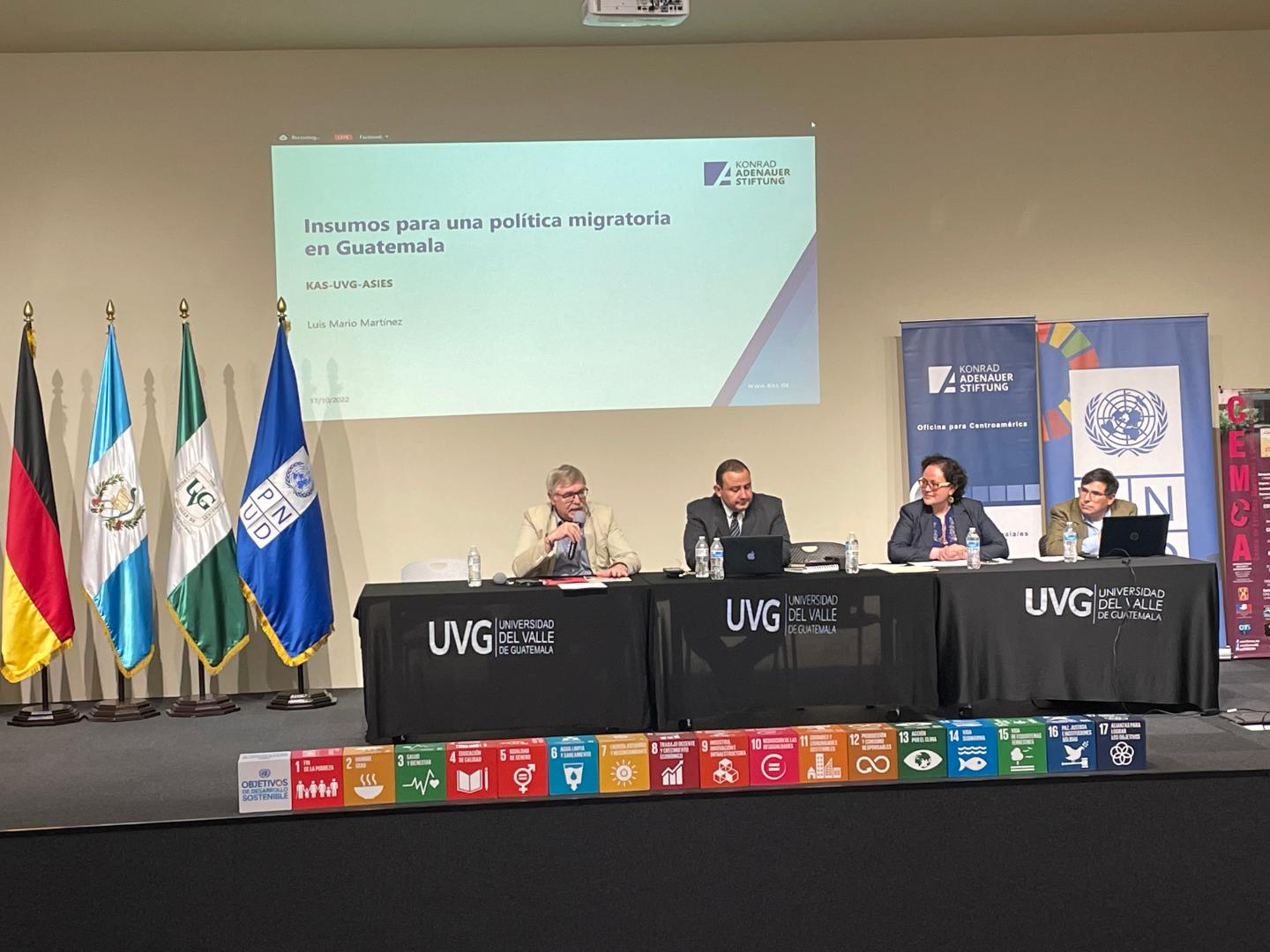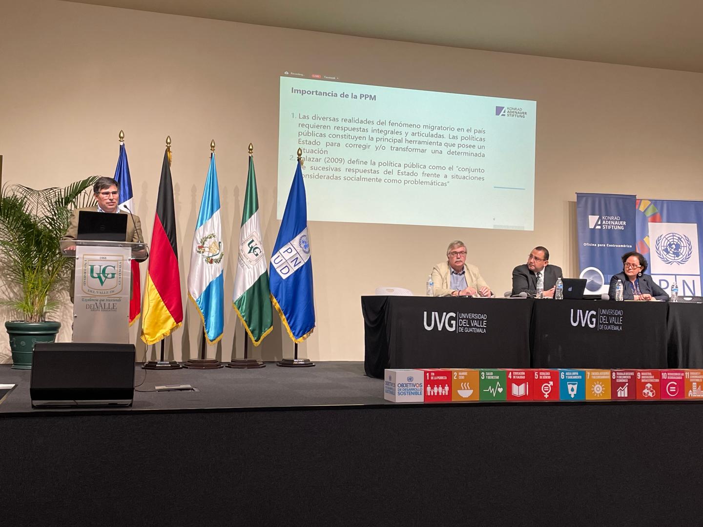 Der Berater Mgtr. Luis Martínez, führte die Präsentation der Forschung durch: "Inputs for a migration policy in Guatemala".