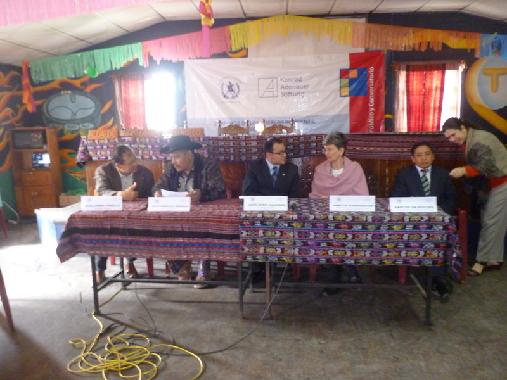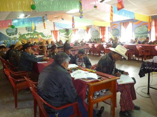 El conversatorio que siguió al foro fue enfocado en asuntos sobre mecanismos de coordinación entre sistemas jurídicos, realizado en la sede de la Municipalidad Indígena de Sololá y en el que participaron como panelistas: