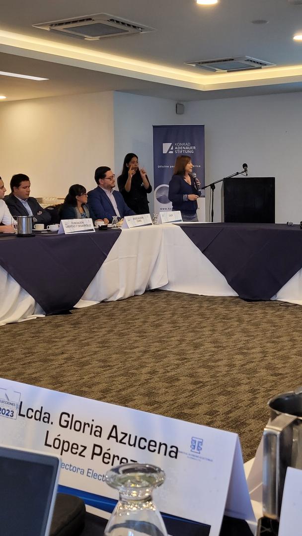 Die Präsidentin des TSE, Dr. Irma Palencia, eröffnete die Reihe der Dialoge mit den Organisationen der Zivilgesellschaft und lud sie zu einem monatlichen Treffen ein, das von nun an bis zum Ende des Wahlprozesses 2023 im Dezember stattfinden soll.