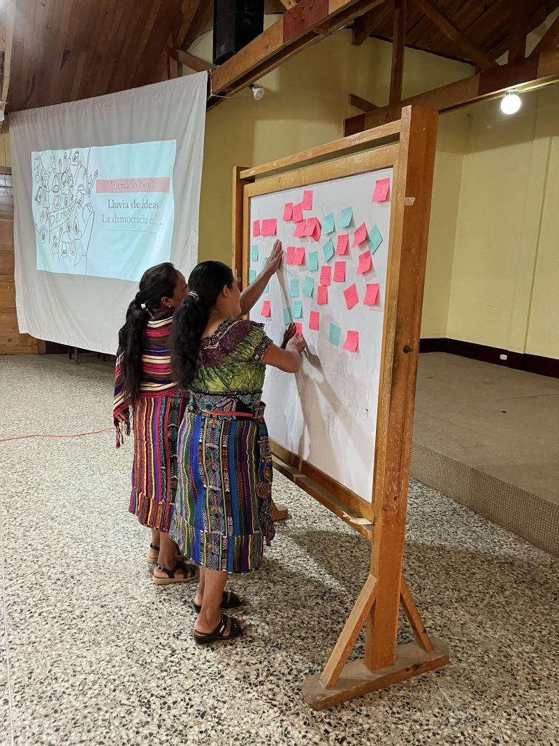 Der Tag begann mit einem Besuch im Wald von El Aprisco, um ein Treffen mit den Direktoren von CDRO abzuhalten und eines der Projekte kennenzulernen, die zur Selbsterhaltung der Organisation beitragen. Später präsentierte der Lehrer Ricardo Barreno im Schulungszentrum das Thema "Funktionsweise politischer Parteien" und begann mit einer partizipativen Übung darüber, was die Teilnehmer unter "Demokratie" verstehen. Am darauffolgenden Tag leitete Dr. Juan Jacobo Dardón den Workshop zur Erstellung der "Thematischen Agenden der Abteilungen für die Interessenvertretung mit Beteiligung der Bevölkerung".