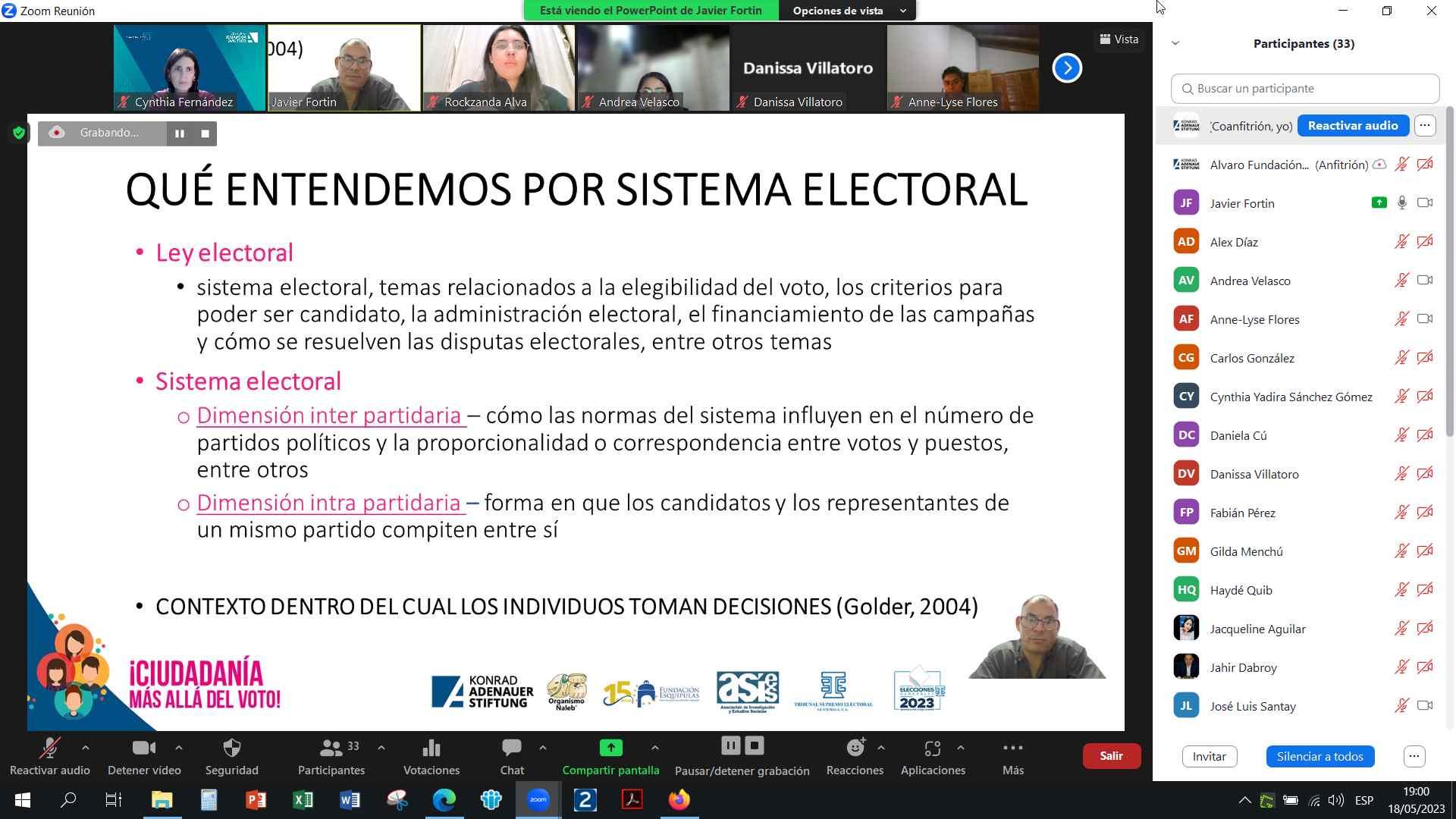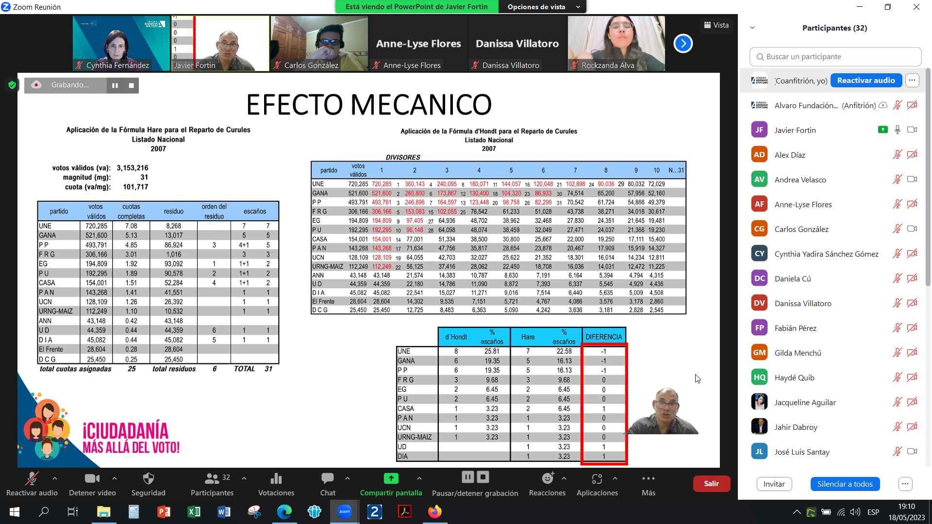 Javier Fortín behandelte das Thema "Wahlsystem", wobei er besonders auf die folgenden Aspekte einging: