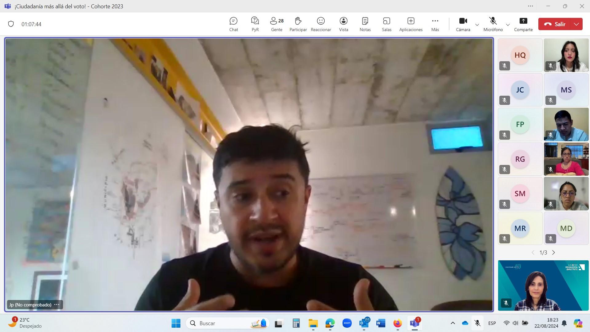 Die Teilnehmer des Kurses „Citizenship beyond the vote“ sprachen mit Juan Pablo und äußerten ihre Bedenken über ihre Arbeitsweise, die von ihnen durchgeführten Projekte, die Finanzierung und ihre Zukunftspläne.